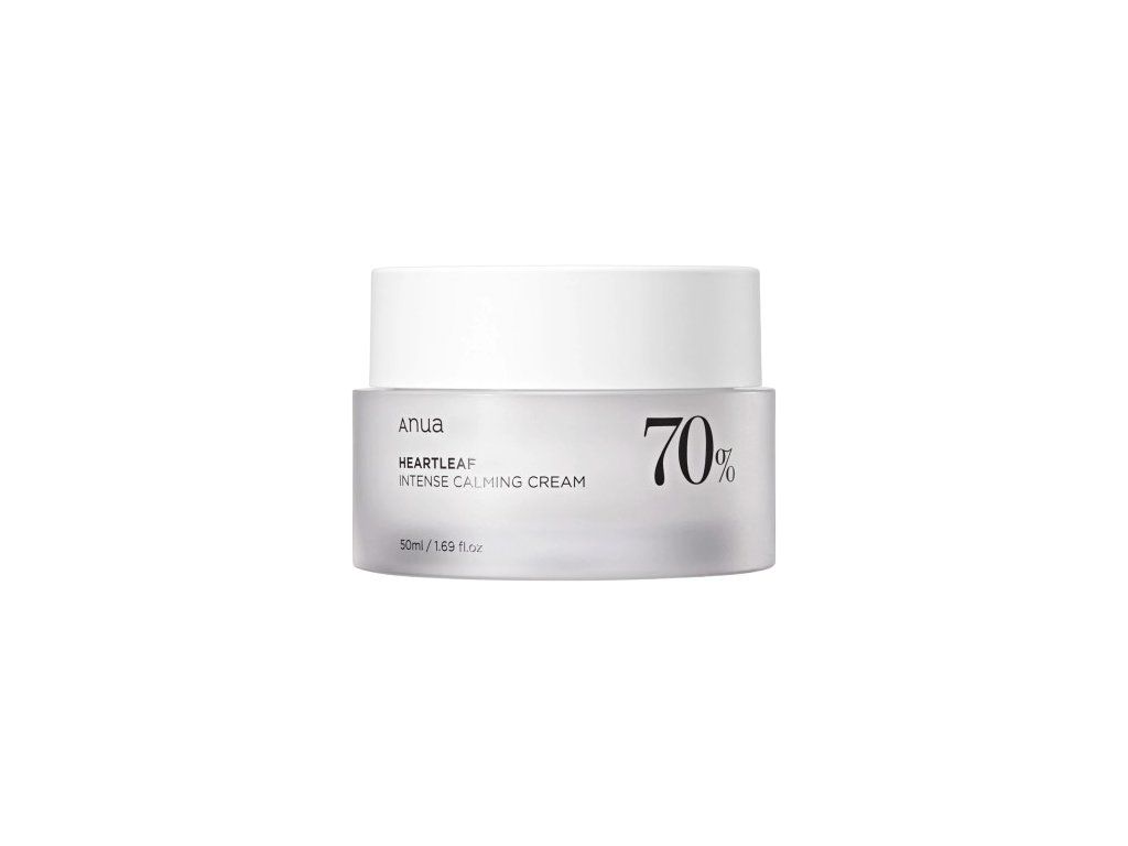 Anua – Heartleaf 70% Intense Calming Cream – 50 ml – bohatý, ale uklidňující krém s 70% extraktem Heartleaf (Houttuynia Cordata), který zmírňuje podráždění, hluboce hydratuje a posiluje kožní bariéru. Je navržen pro citlivou a aknózní pokožku, poskytuje intenzivní hydrataci bez těžkosti, díky čemuž je pleť měkká, vyvážená a pohodlná. Hedvábná, nemastná textura se rychle vstřebává a zároveň poskytuje dlouhodobou úlevu od zarudnutí a suchosti.